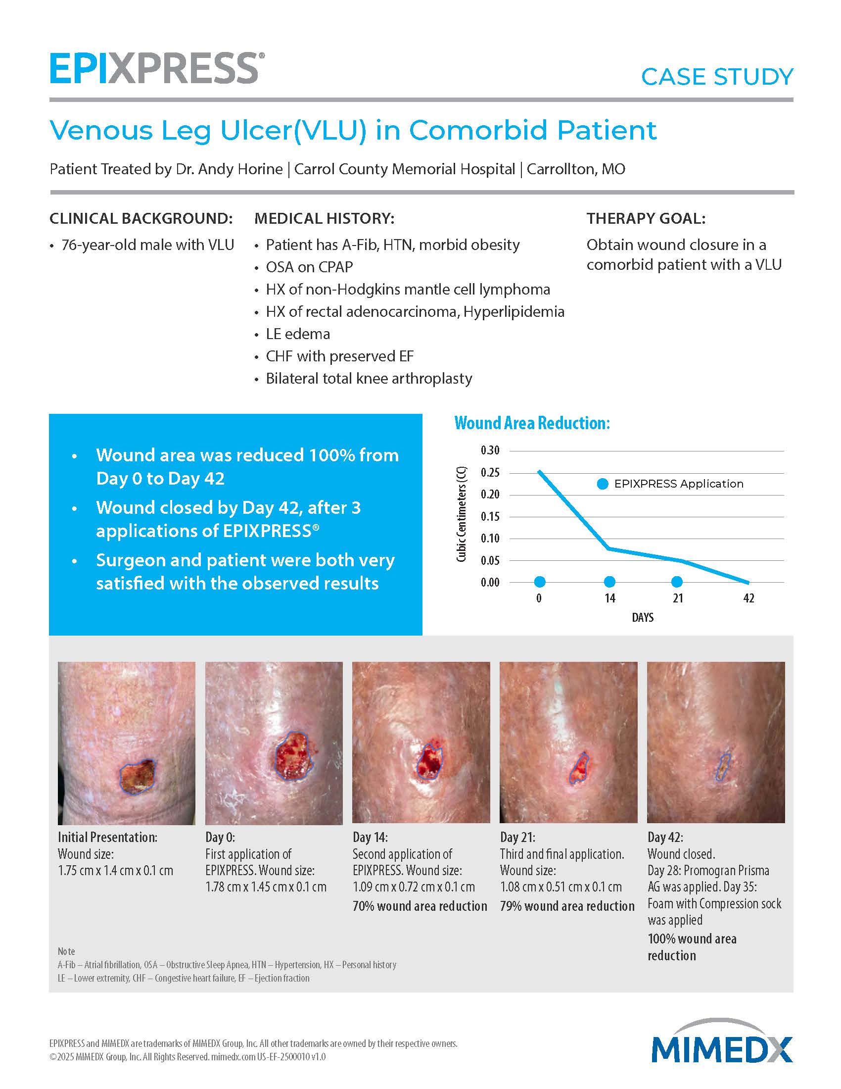 EPIXPRESS® is a lyophilized human placental-based allograft that includes the amnion layer, intermediate layer, and chorion layer. EPIXPRESS is intended for use as a barrier to provide a protective environment in acute and chronic wounds. The PURION® process preserves Extracellular Matrix (ECM) components including 300+ regulatory proteins.1