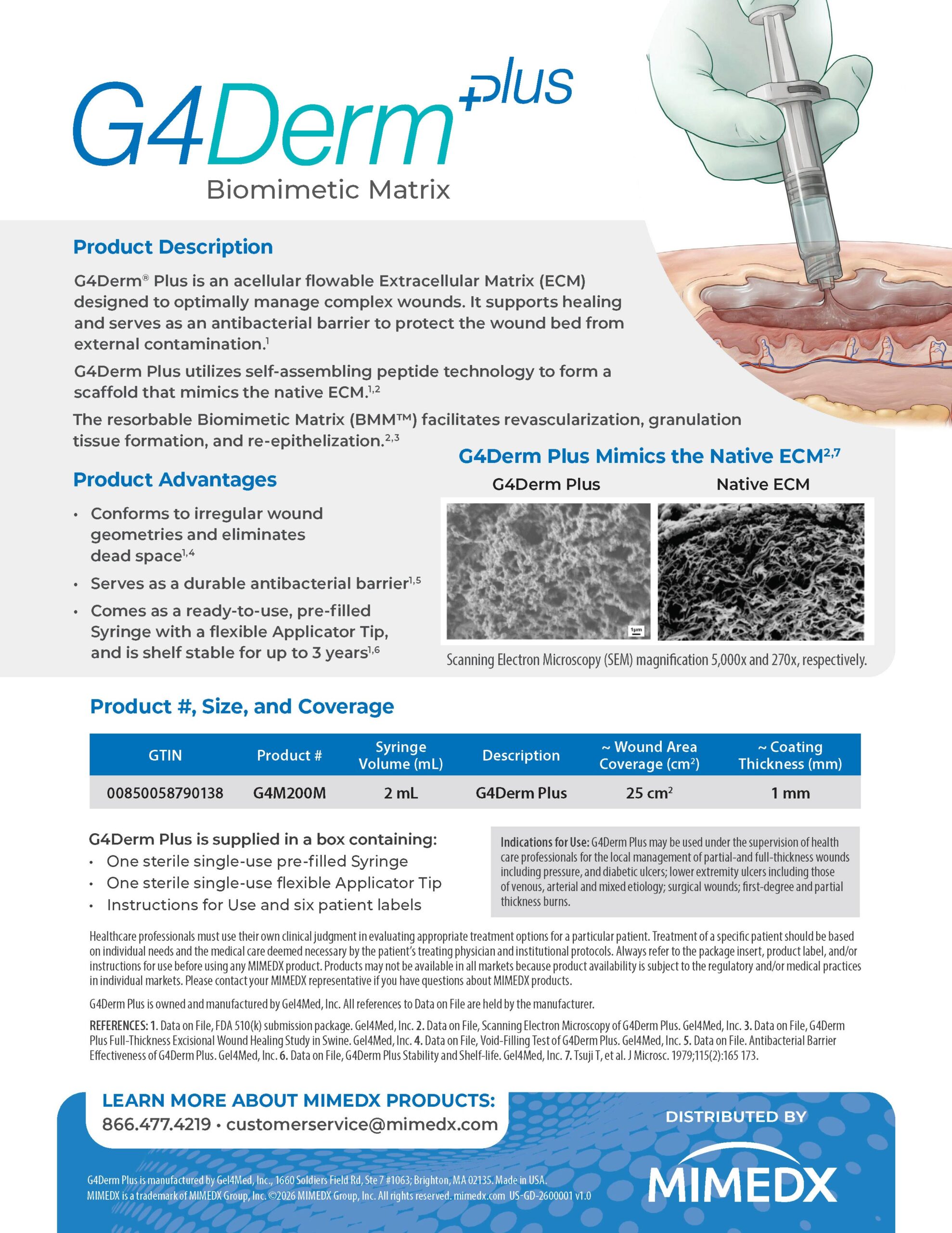 G4Derm® Plus is an acellular flowable Extracellular Matrix (ECM) designed to optimally manage complex wounds.