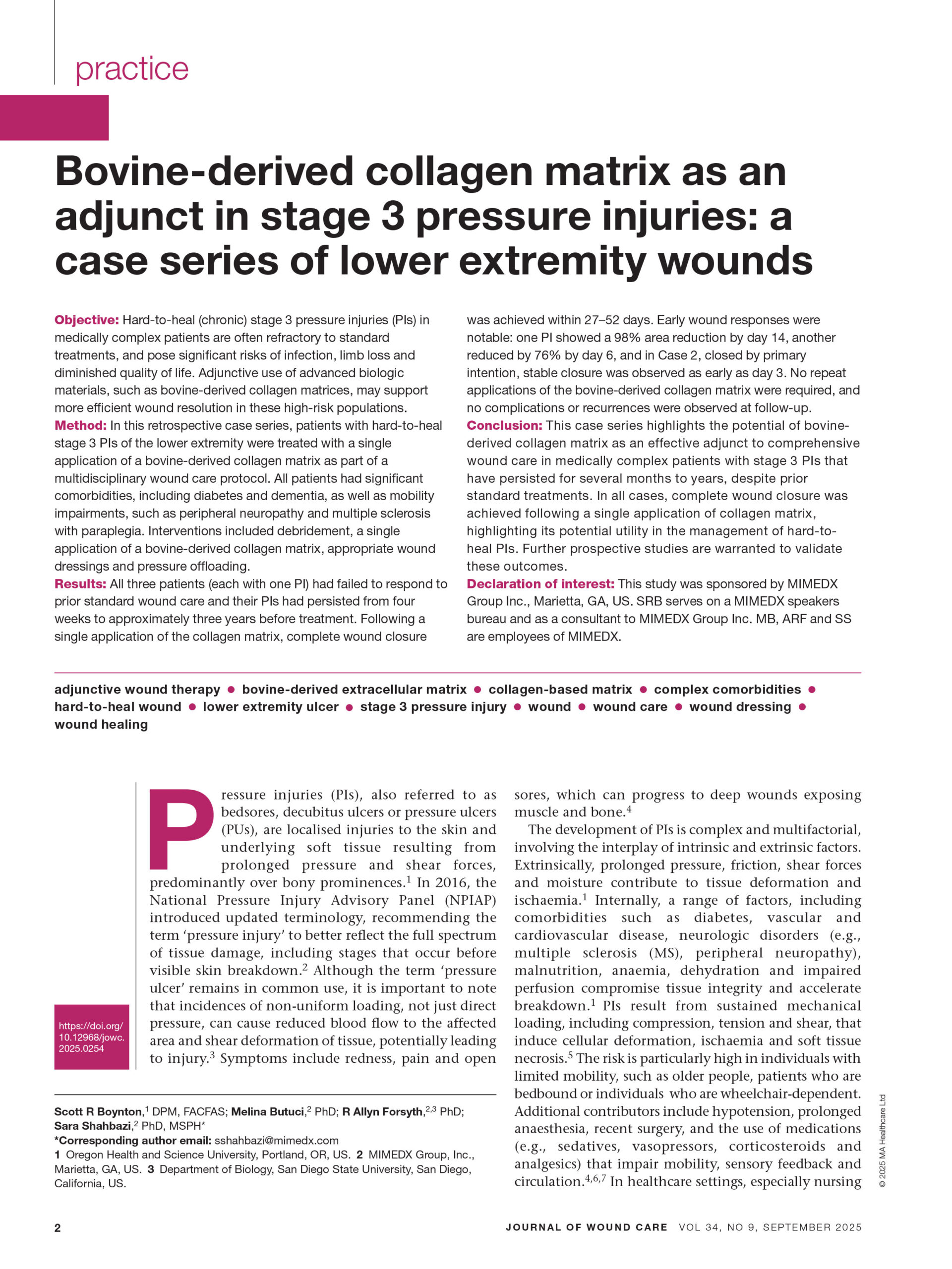 Boynton S, et al. J Wound Care. 2025;34(9):708-716.