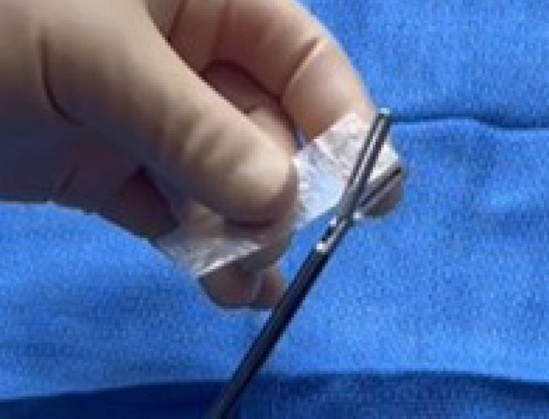 - Surgical equipment and surgical site should be dry and clean of debris (pass gauze in and out of cannula)