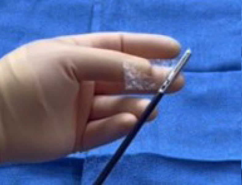 1. For a smaller sheet (e.g., 2 cm x 6 cm), grasp corner of allograft.