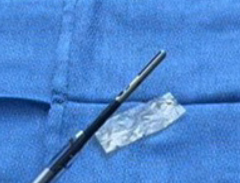 - Use an atraumatic grasper to introduce the allograft sheet through the assistant port