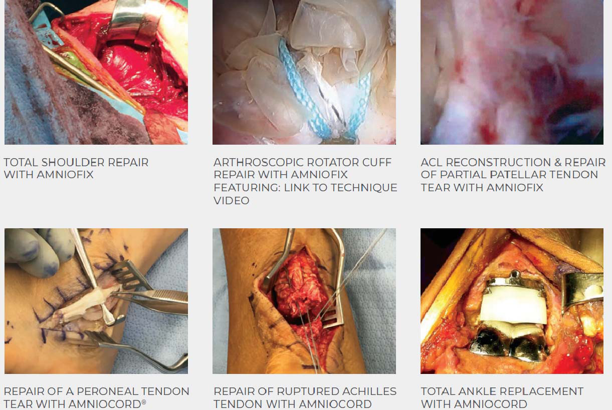 Examples of AMNIOFIX® and AMNIOCORD® used as a protective barrier over the surgical repair or replacement: