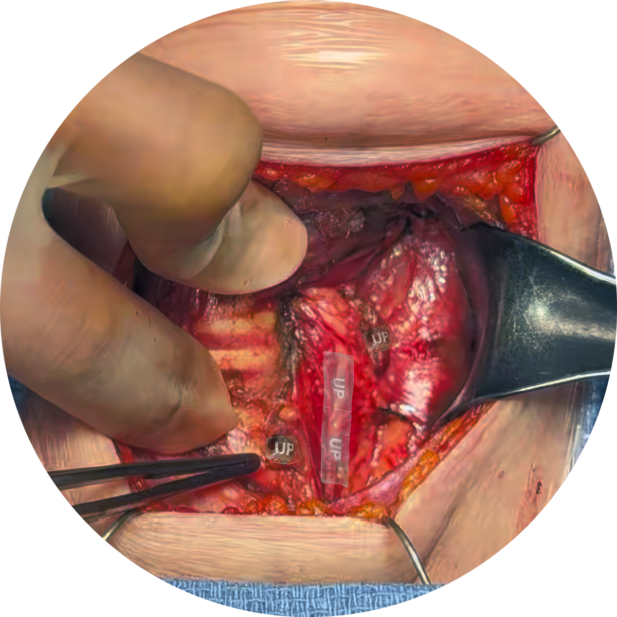 - A single-center, prospective data study with historical controls compared thyroidectomy patients with and without AMNIOFIX, applied to >3cm fully dissected RLNs, as a protective barrier to support the healing cascade.